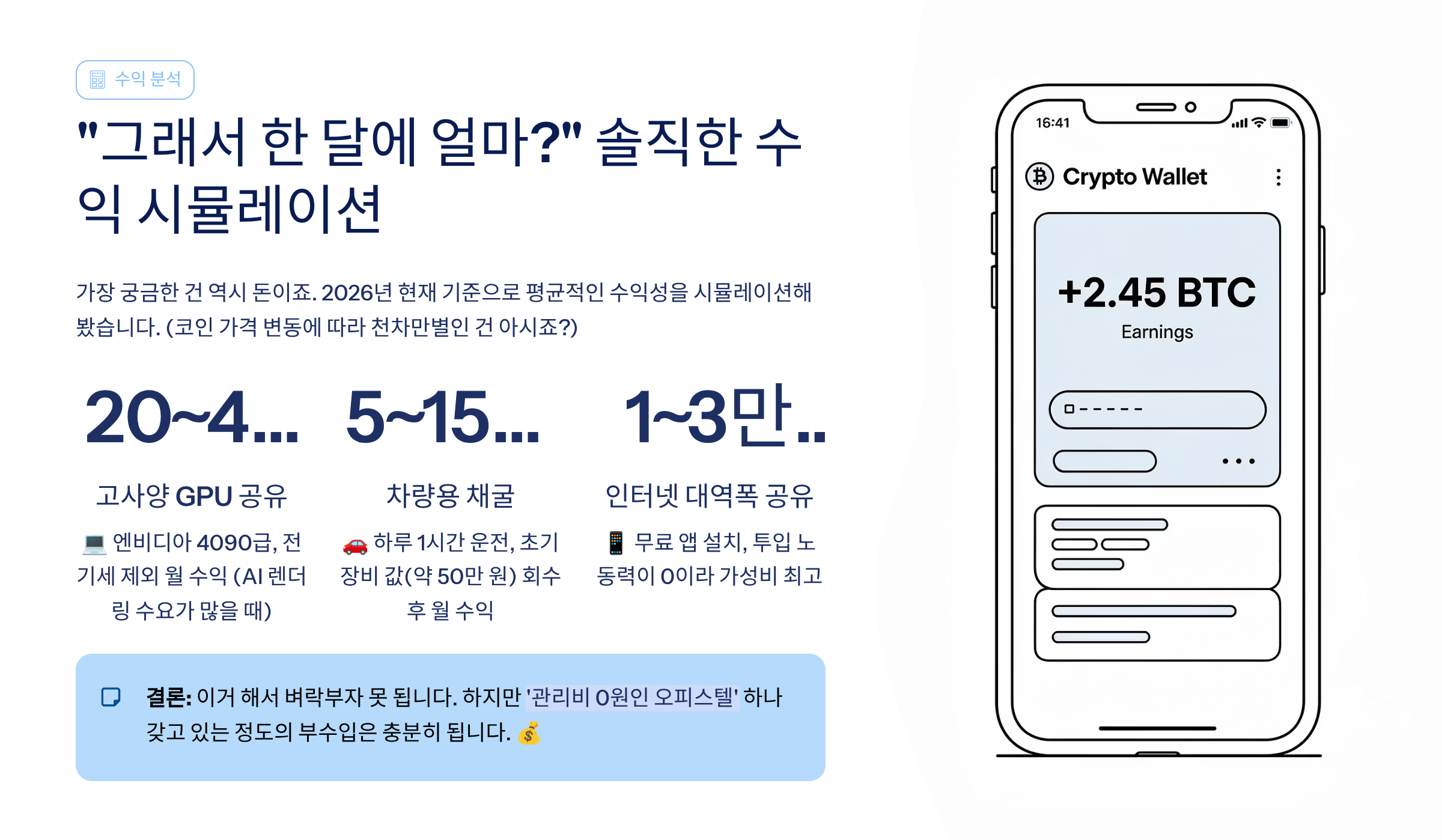 결론: 이거 해서 벼락부자 못 됩니다. 하지만 '관리비 0원인 오피스텔' 하나 갖고 있는 정도의 부수입은 충분히 됩니다. 💰