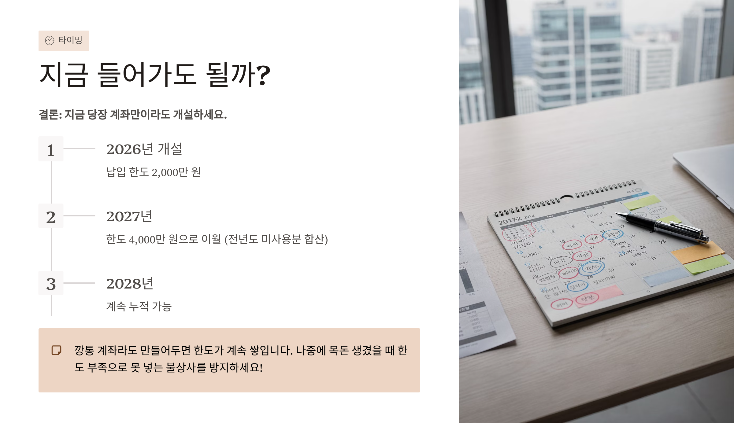 - 타이밍: 지금 당장 만들어야 하는 진짜 이유 (한도 이월)
