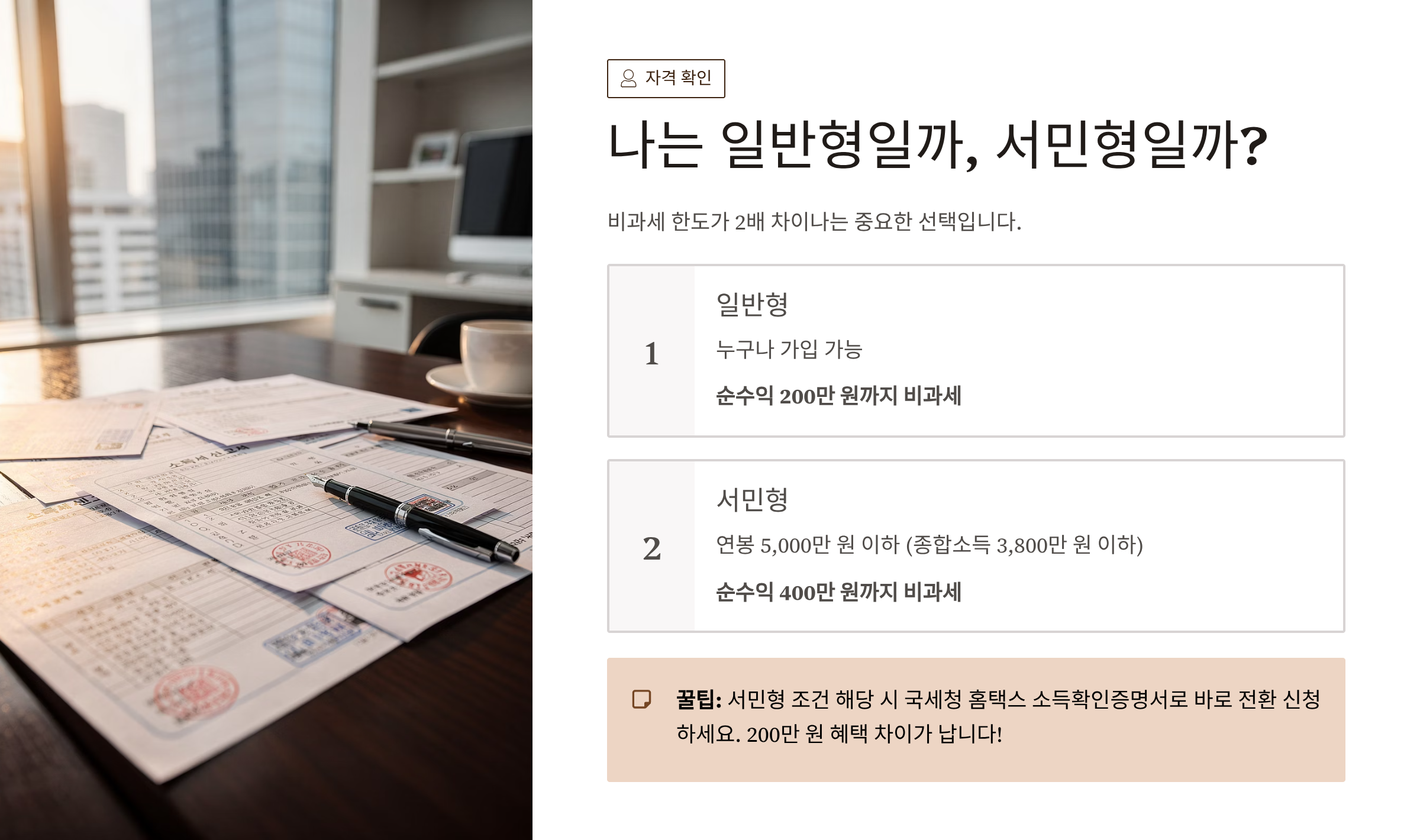 2. 신분 확인: 나는 일반형일까, 서민형일까? (팩트체크) 🔍