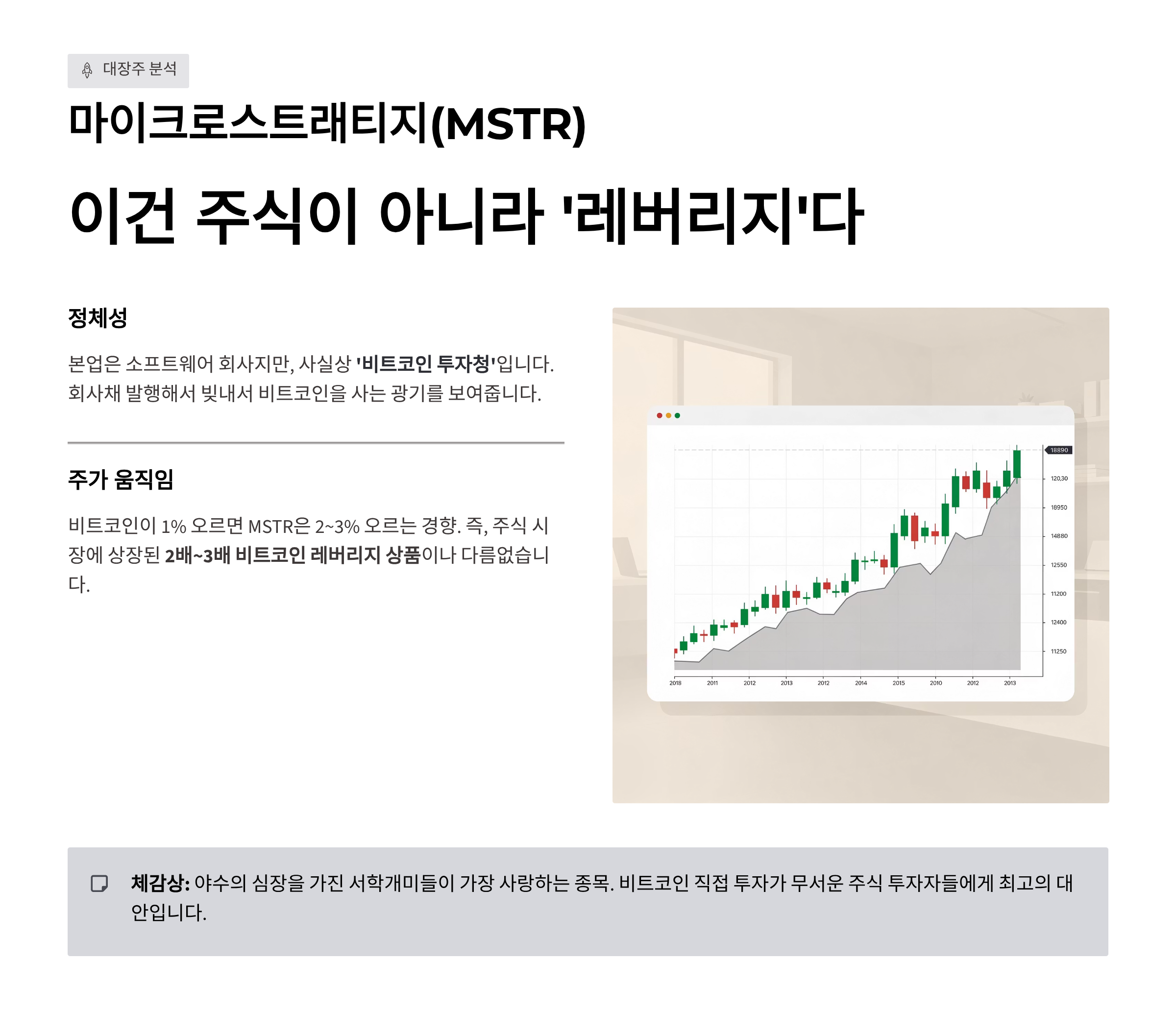 - 대장주 분석: 마이크로스트래티지(MSTR), 이건 주식이 아니라 '레버리지'다
