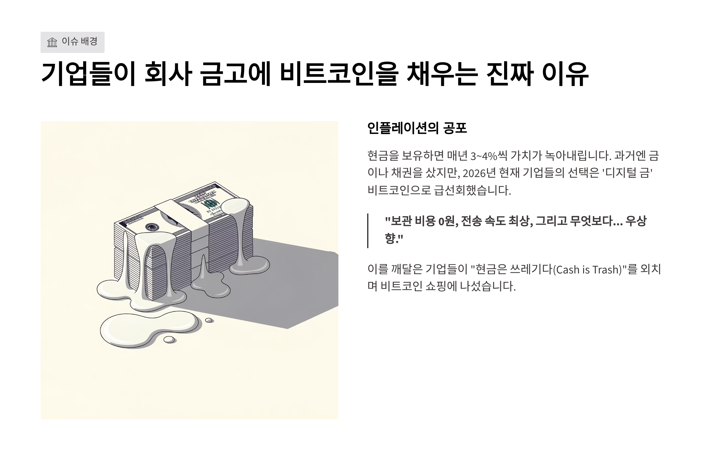 1. 이슈 배경: 기업들이 회사 금고에 비트코인을 채우는 진짜 이유 🏦