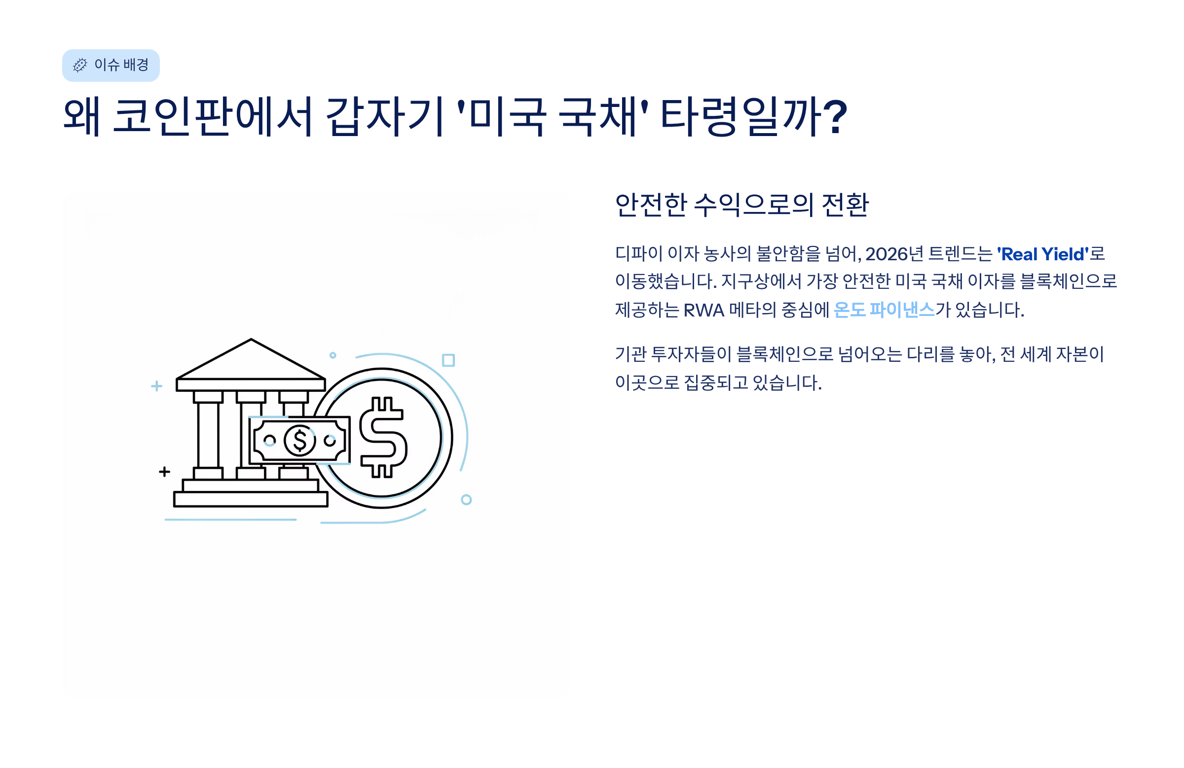 1. 이슈 배경: 왜 코인판에서 갑자기 '미국 국채' 타령일까? 🇺🇸