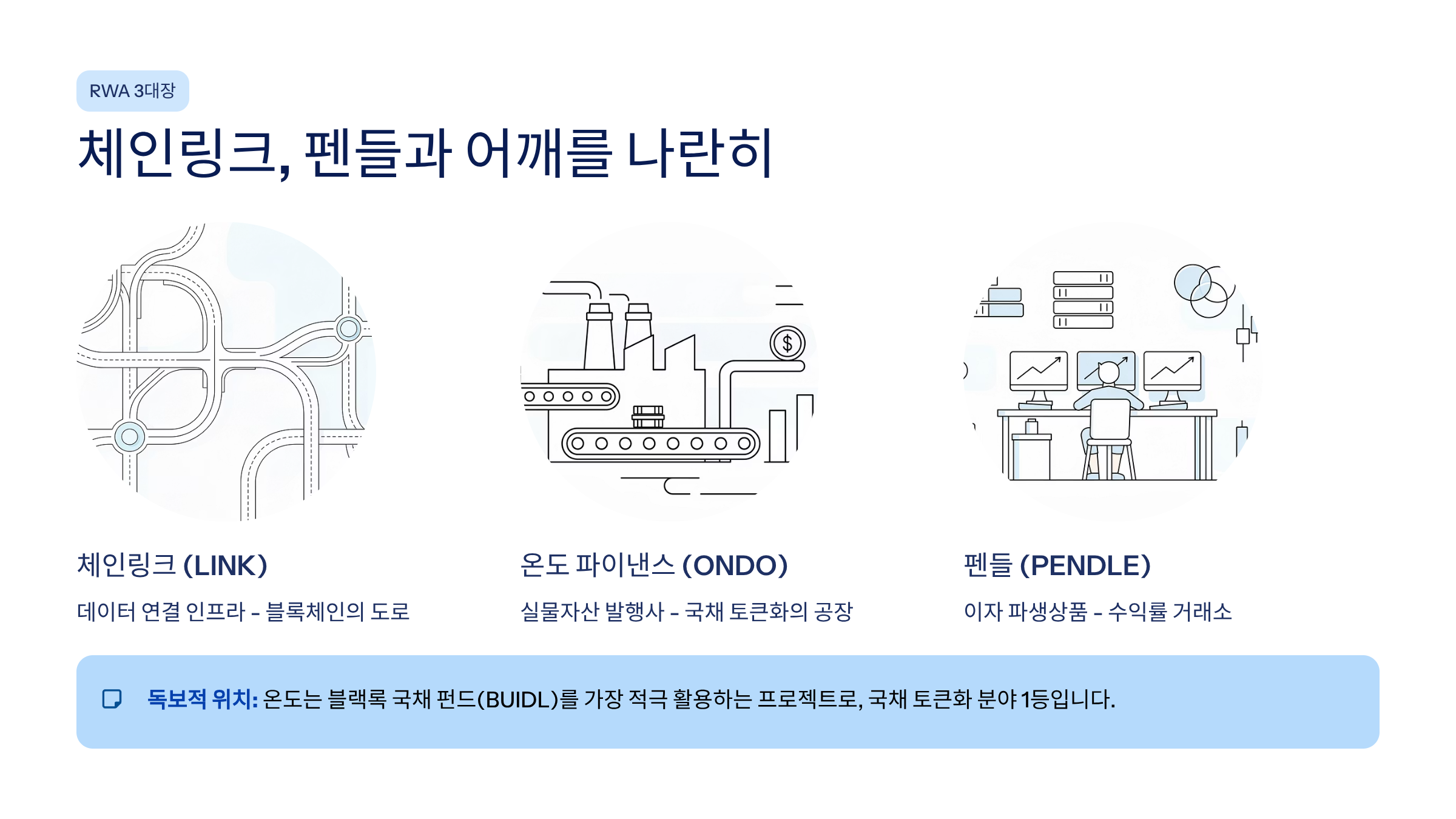 - 시장 지위: 체인링크, 펜들과 어깨를 나란히 하는 'RWA 3대장'