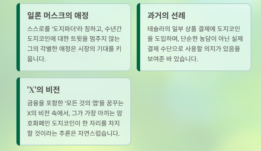 '원조 밈코인' 도지코인(DOGE)의 가격은 기술이나 사업 모델이 아닌, 단 하나의 강력한 '서사(Narrative)'에 의해 움직입니다.