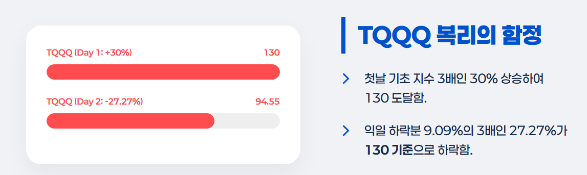 이 현상 때문에 TQQQ는 횡보장에서 가치가 계속해서 줄어드는 구조적 위험을 안고 있다.