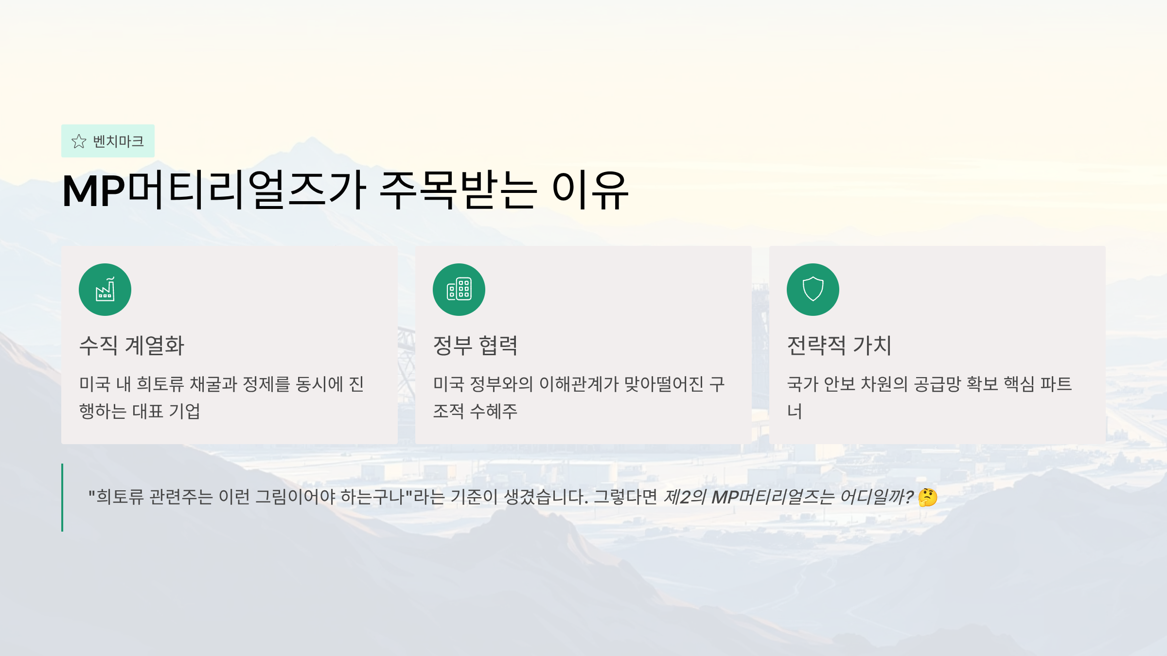 🏭 MP머티리얼즈가 주목받는 이유