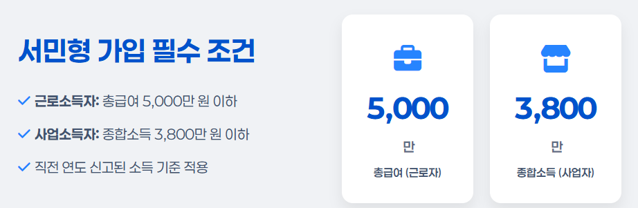 2. 가장 중요한 '서민형 가입 조건' 확인하기