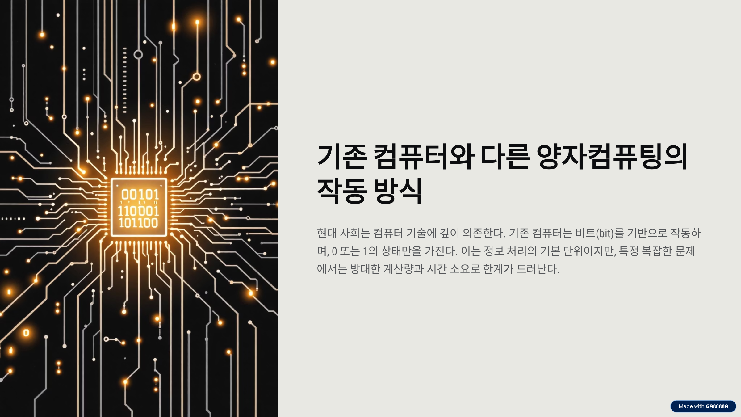 현대 사회는 컴퓨터 기술에 깊이 의존한다. 기존 컴퓨터는 비트(bit)를 기반으로 작동한다. 0 또는 1, 둘 중 하나의 상태만을 가진다. 이는 정보 처리의 기본 단위이다. 그러나 특정 복잡한 문제에 직면했을 때, 기존 컴퓨터의 한계가 드러난다. 방대한 계산량과 시간 소요가 문제이다.