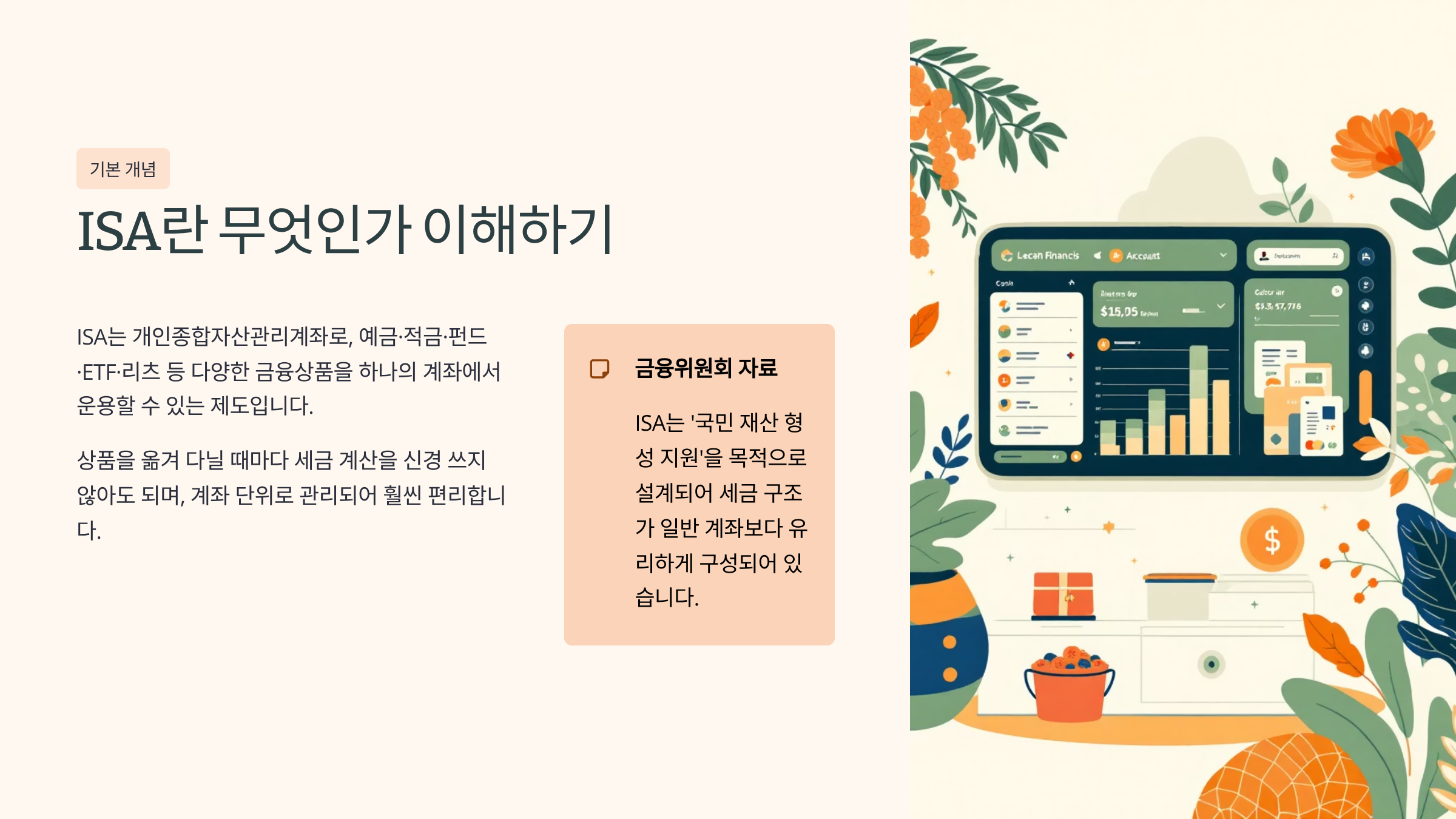 금융위원회 자료에 따르면 ISA는 ‘국민 재산 형성 지원’을 목적으로 설계되었고, 그래서 세금 구조가 일반 계좌와 다르게 유리하게 구성되어 있습니다. 단순히 투자 계좌라기보다는, 중장기 자산 관리를 염두에 둔 그릇에 가깝다는 느낌을 받았습니다 📦