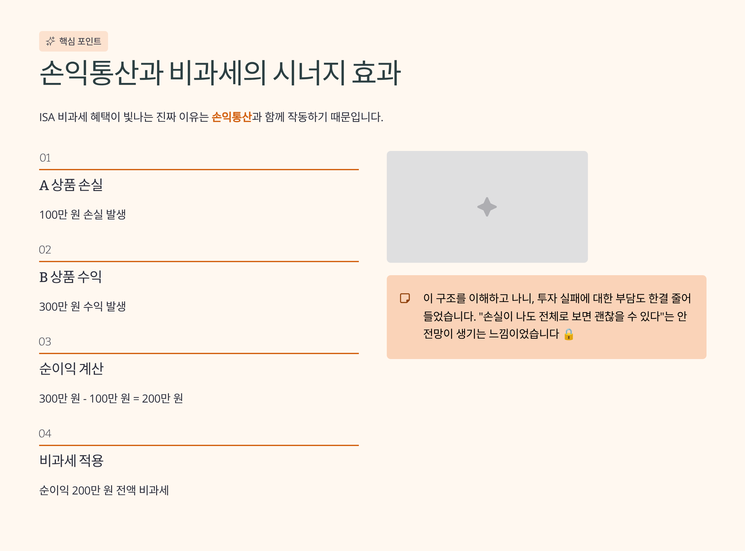 여기서 중요한 포인트는 “수익”이 아니라 순이익 기준이라는 점입니다. 손실과 이익을 모두 합산한 뒤 남은 금액이 기준이 되기 때문에, 투자 과정에서 발생한 손실도 의미 있게 반영됩니다. 이 구조를 이해하고 나니 ISA가 왜 절세에 유리한지 감이 오기 시작했습니다 🔍