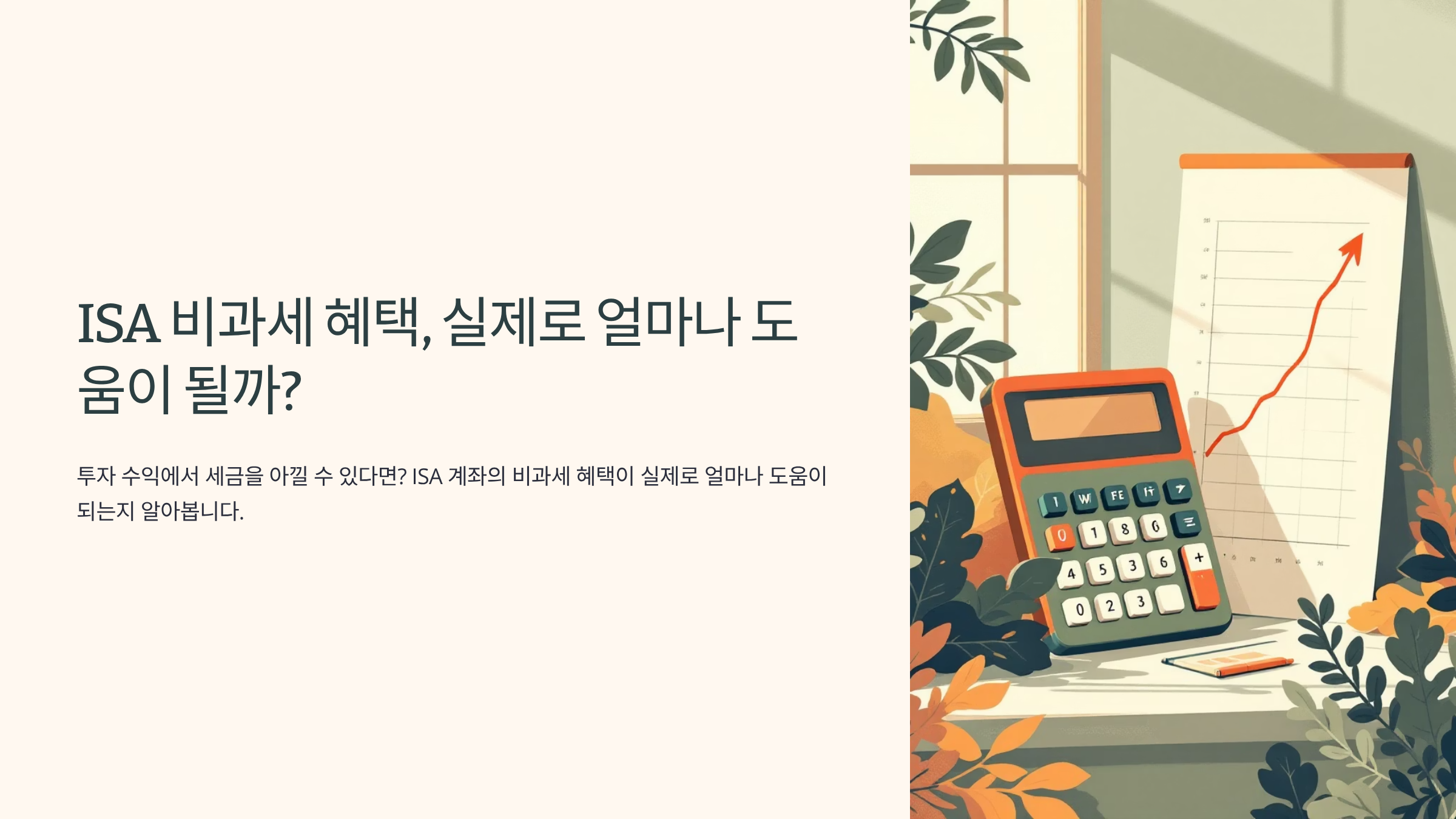 ISA 비과세 혜택을 처음 들었을 때는 솔직히 “200만 원 비과세가 그렇게 큰가?”라는 생각부터 들었습니다. 그런데 직접 계산해보고, 몇 년간 굴려보니 생각이 완전히 달라졌습니다. 단순히 세금을 조금 아끼는 수준이 아니라, 투자 전략 자체가 달라질 수 있는 장치라는 걸 느끼게 되었거든요 😊