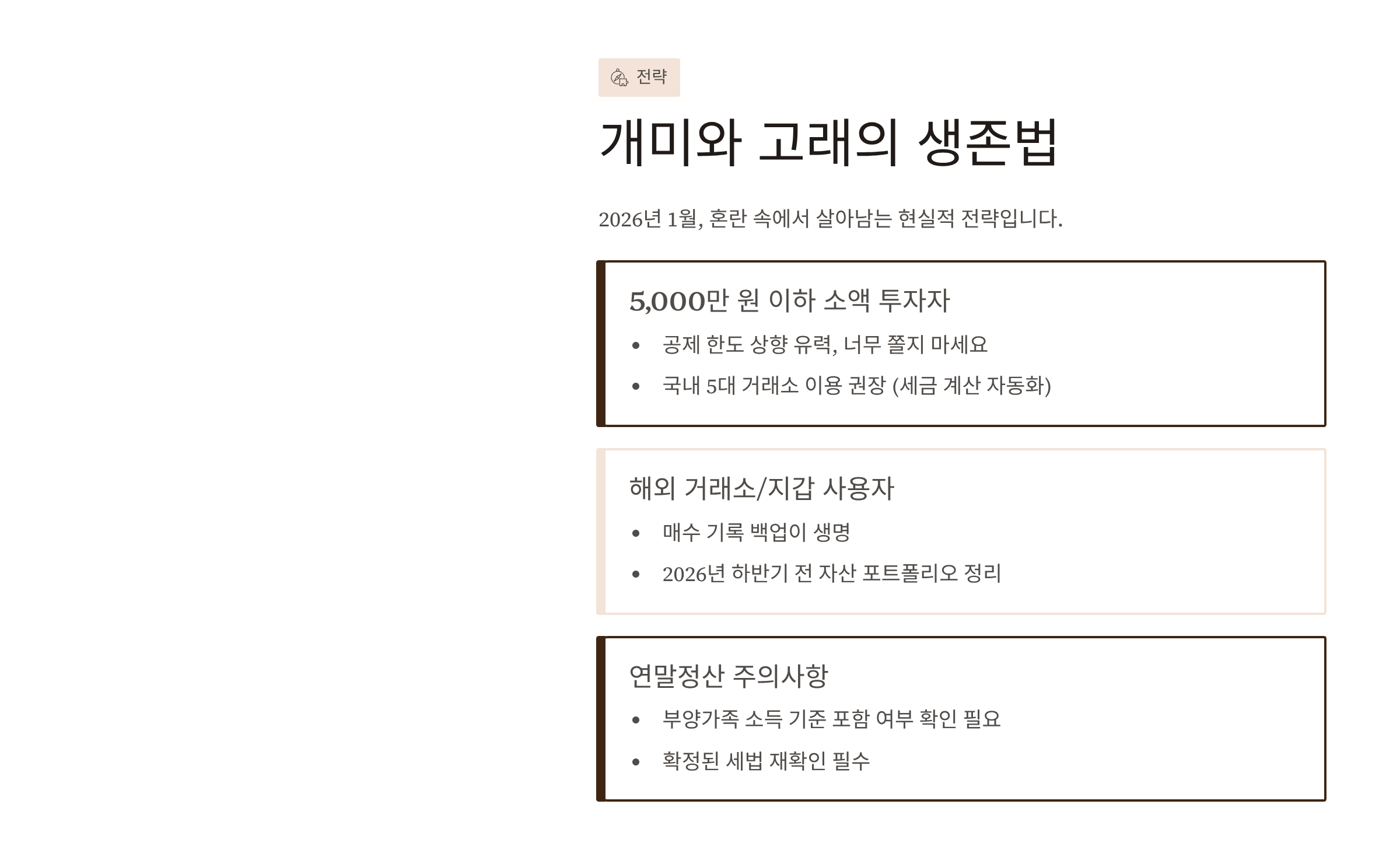 2026년 1월, 혼란 속에서 살아남는 전략입니다.