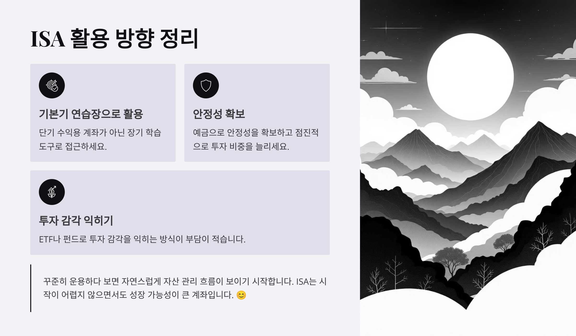 재테크 초보라면 ISA를 단기 수익용 계좌로 보기보다는 ‘기본기 연습장’으로 생각하시면 좋겠습니다. 예금으로 안정성을 확보하고, ETF나 펀드로 투자 감각을 익히는 방식이 부담이 적었습니다. 꾸준히 운용하다 보면 자연스럽게 자산 관리 흐름이 보이기 시작합니다. ISA는 시작이 어렵지 않으면서도 성장 가능성이 큰 계좌라는 점에서 충분히 도전해볼 만하다고 느꼈습니다. 😊