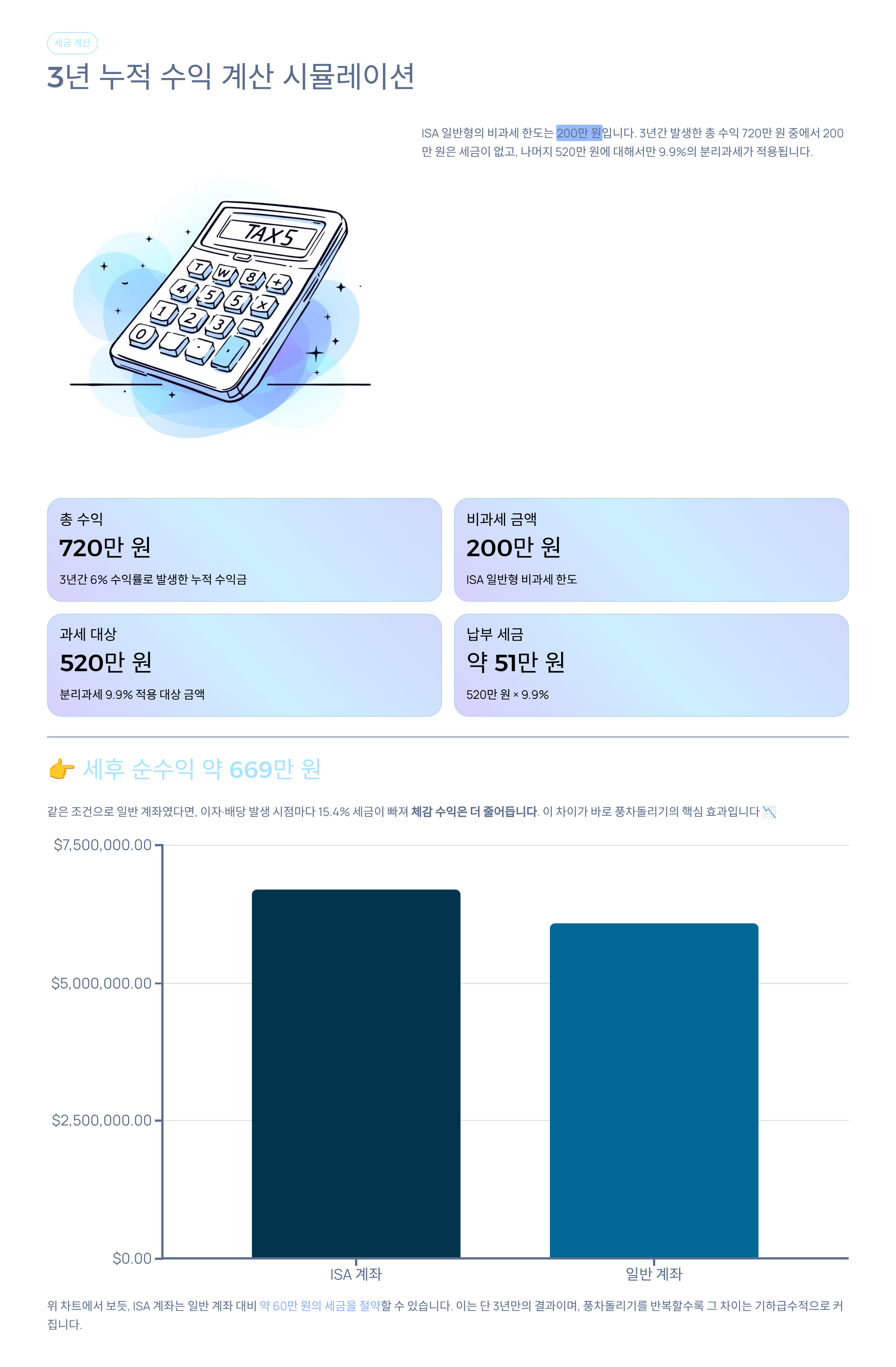 - ISA 유형: 일반형 (비과세 한도 200만 원)