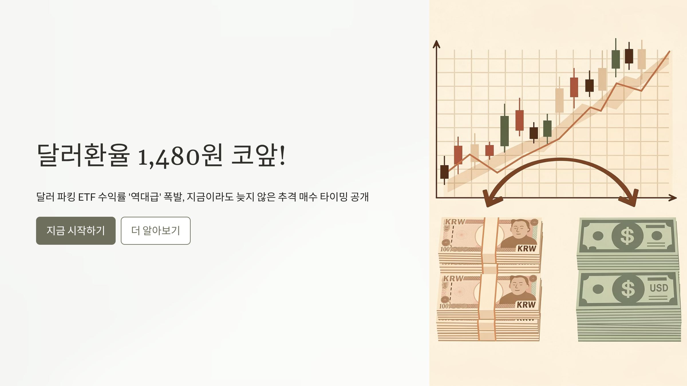달러환율 1,480원 코앞! 달러 파킹 ETF 수익률 '역대급' 폭발, 지금이라도 늦지 않은 추격 매수 타이밍 공개.