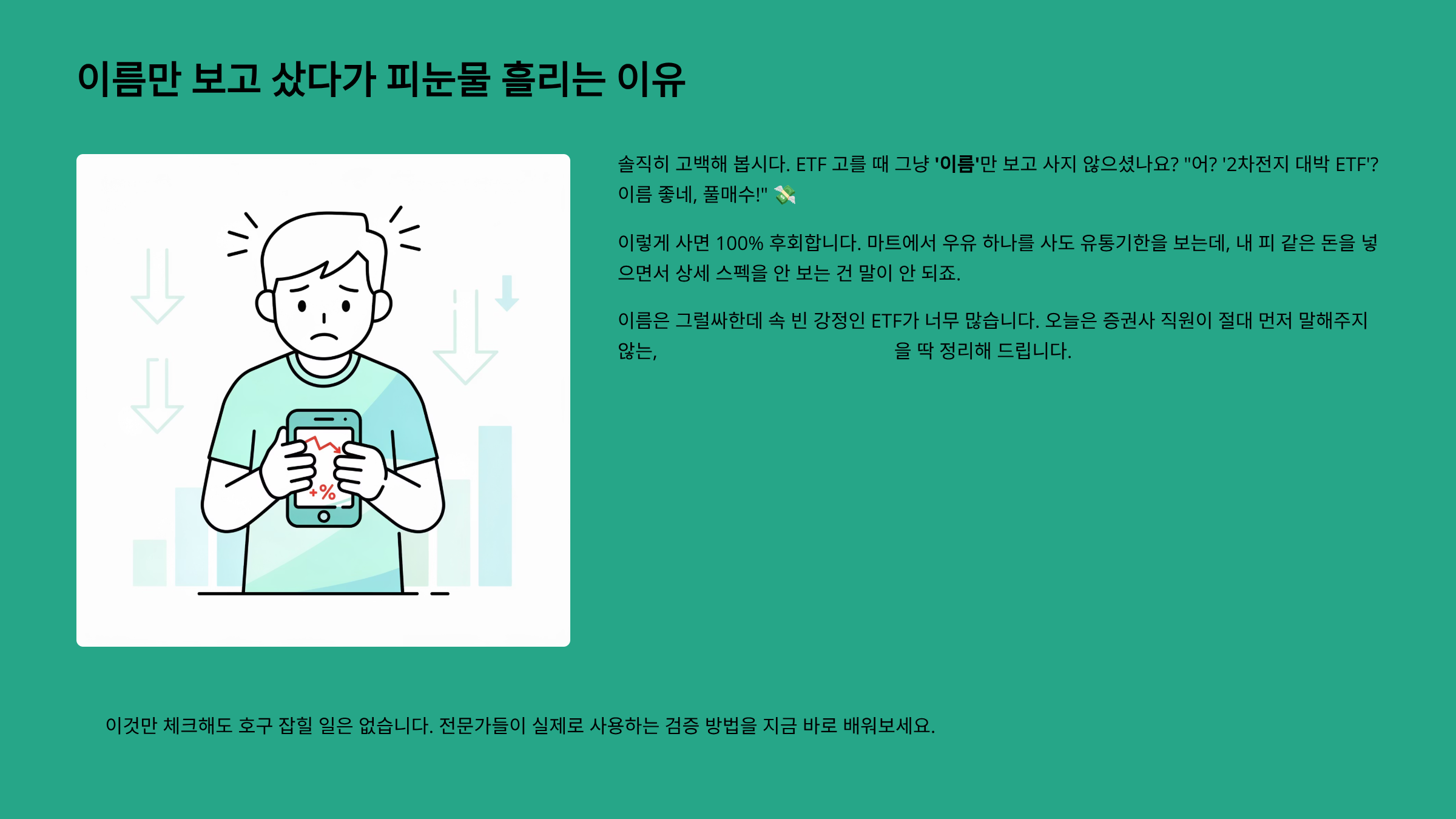 🚨 "이거 모르고 사면 반토막?" ETF 매수 전 무조건 확인해야 할 6가지 체크리스트 ✅