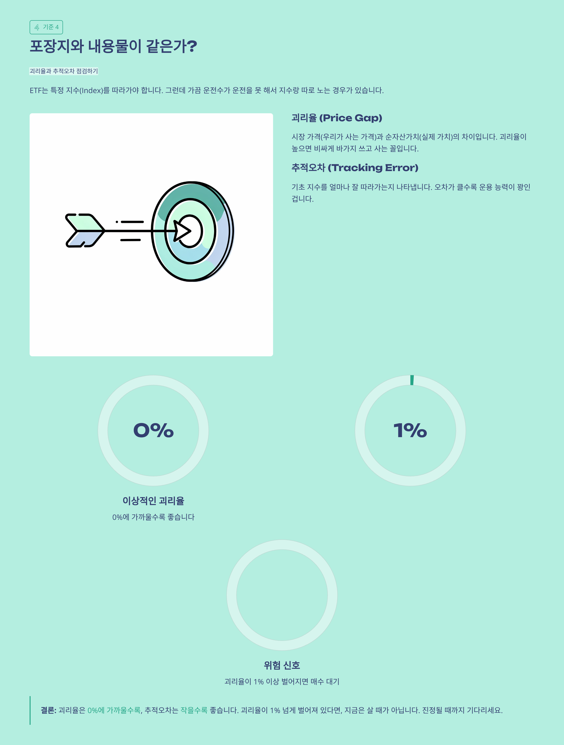 - 기준 4: 포장지와 내용물이 같은가? (괴리율과 추적오차)